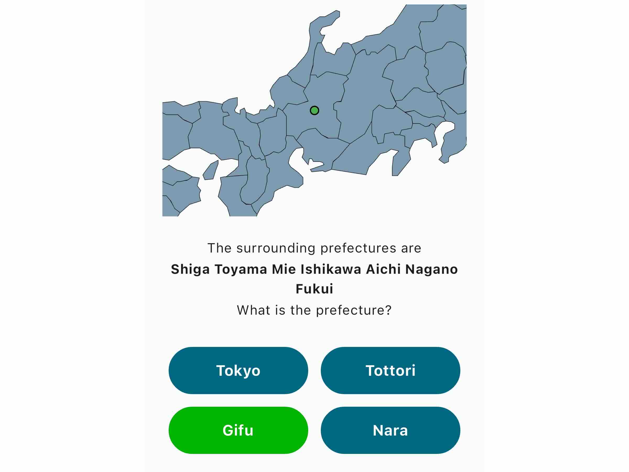 Quiz to guess the prefecture of Japan. The surrounding prefectures are shown. Guess based on that.
