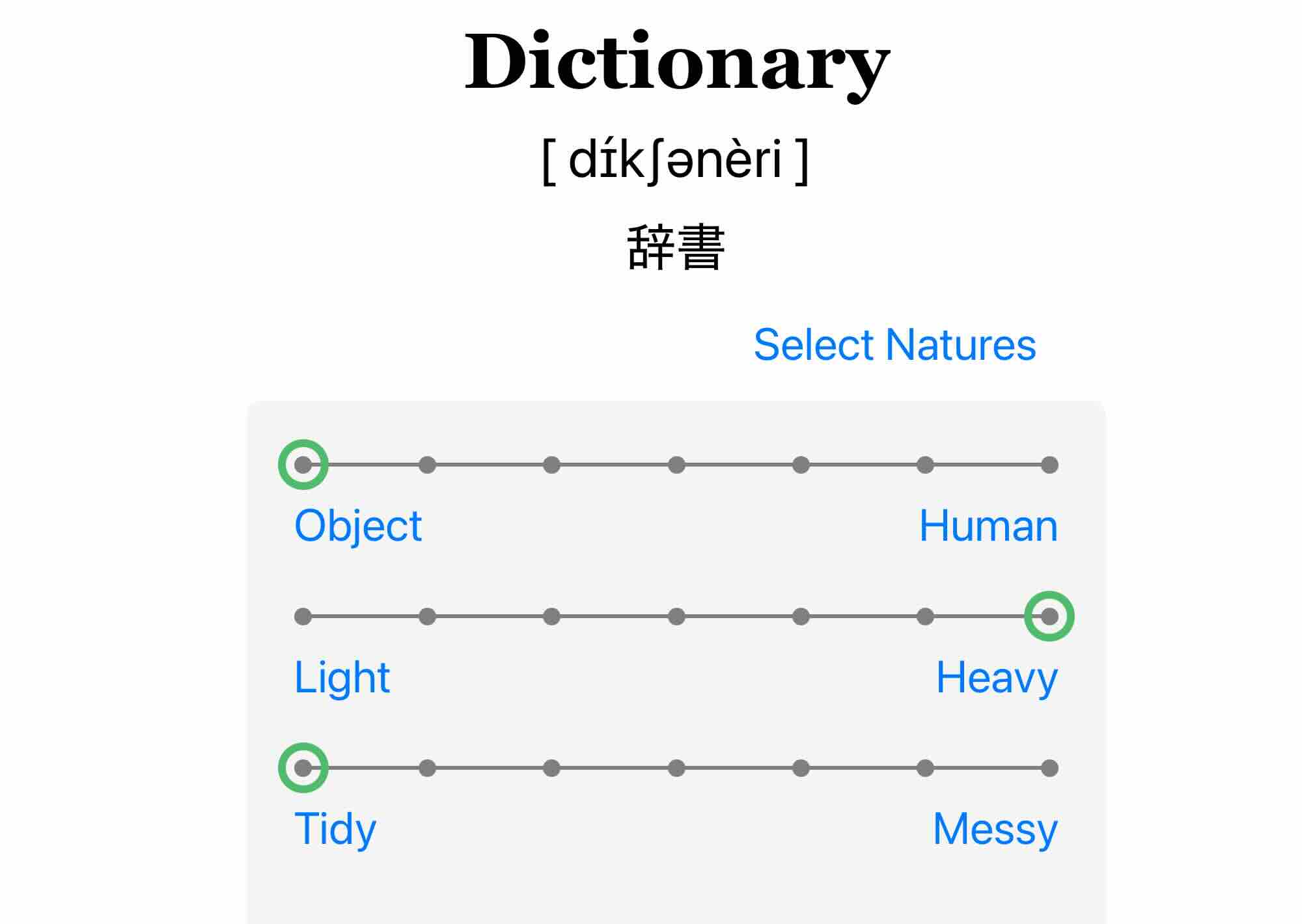 You record the natures of a word and use them as clues to remember its meaning. It is based on the hypothesis that when you memorize a word, it may be easier to remember the meaning if you are aware of the various natures of the word.